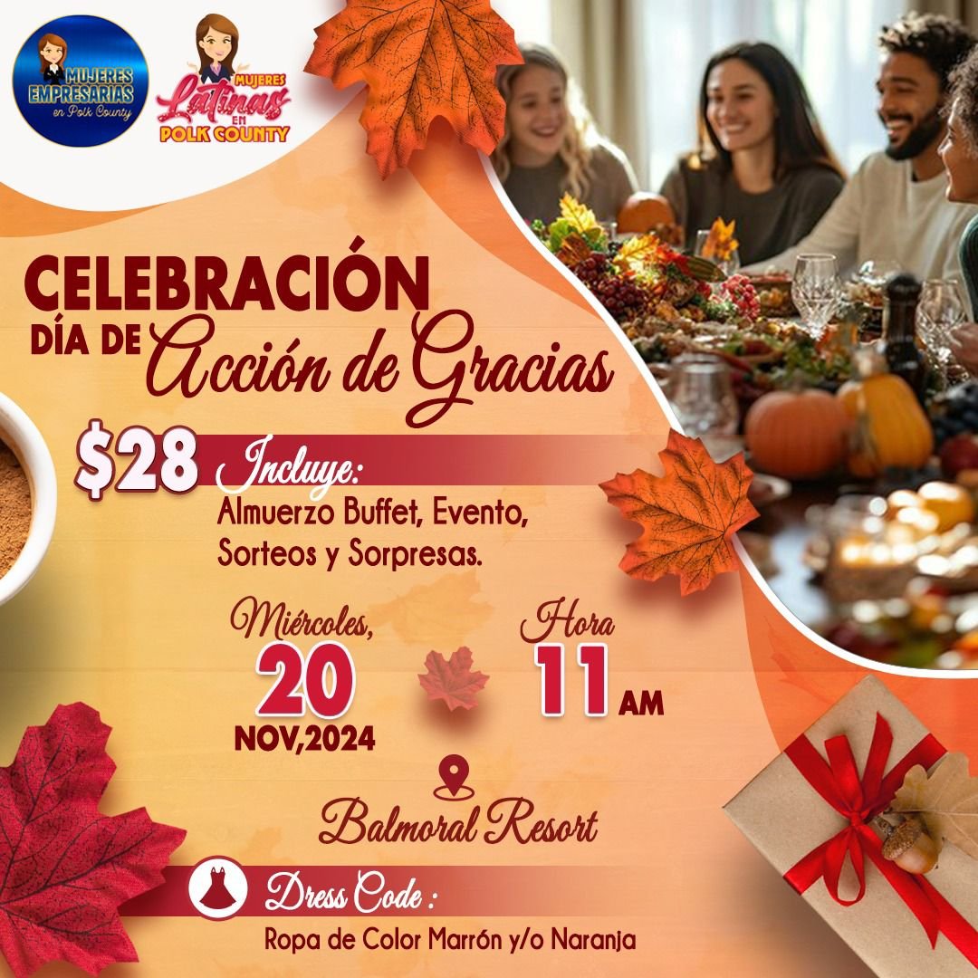🙋♀️ Las queremos invitar a participar de un delicioso *almuerzo buffet* en celebración de la tradición estadounidense por el *Día de Acción de Gracias*.